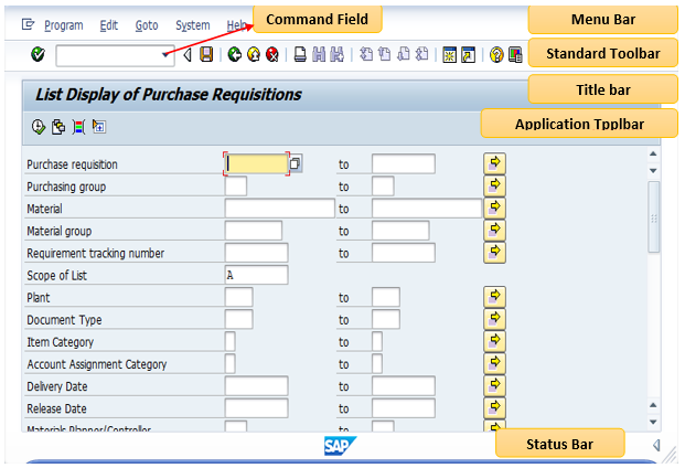 SAP Screen consists of many icons based on specific purpose. SAP will work with transaction codes. For each and every activity, there is alfa numeric code will be used to execute any activity or to see any report. There is no transaction code required if we want to access SAP through portal. SAP Screen and Menu will looks like the following screen,